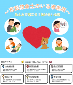 事業所などで発生した傷病者に対し、救急車が到着するまでの間に応急手当を実施していただくなど、事業所の皆様と連携しながら、地域における救命体制の強化を共に目指すものです。
