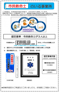 『市民救命士のいる事業所』は、本消防組合独自の制度で、平成15年(2003年)から実施しています。
