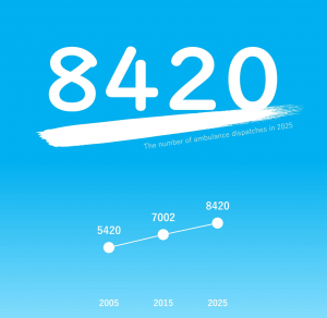 この数字は、昨年の2025年に救急出動した件数です。2005年の5,420件から、20年で3,000件増加しています。