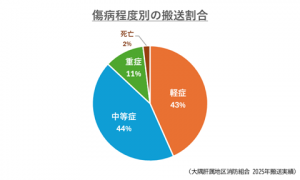 実際に救急搬送された方の中では、入院の必要のない「軽症」の割合が多いのが現状です。